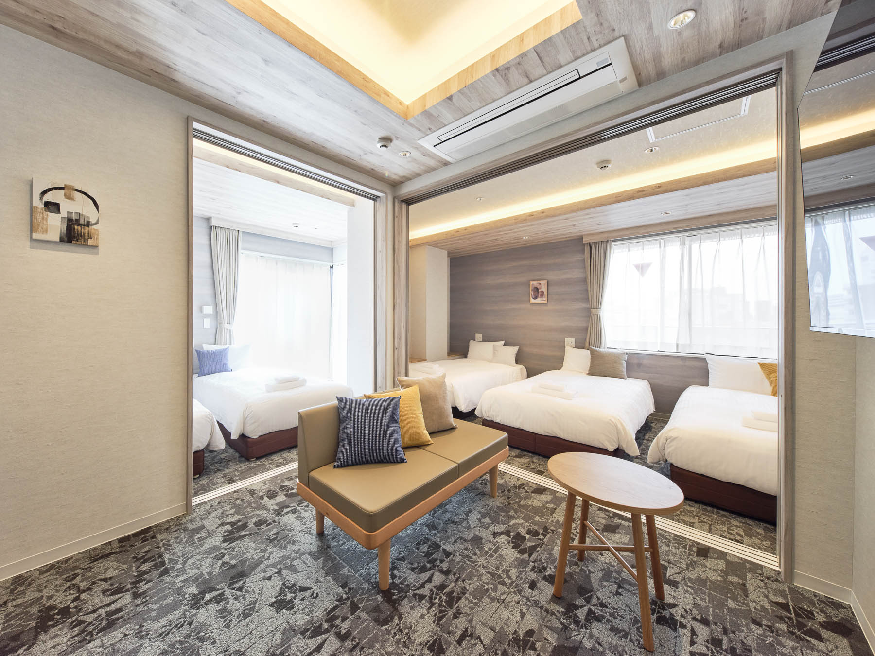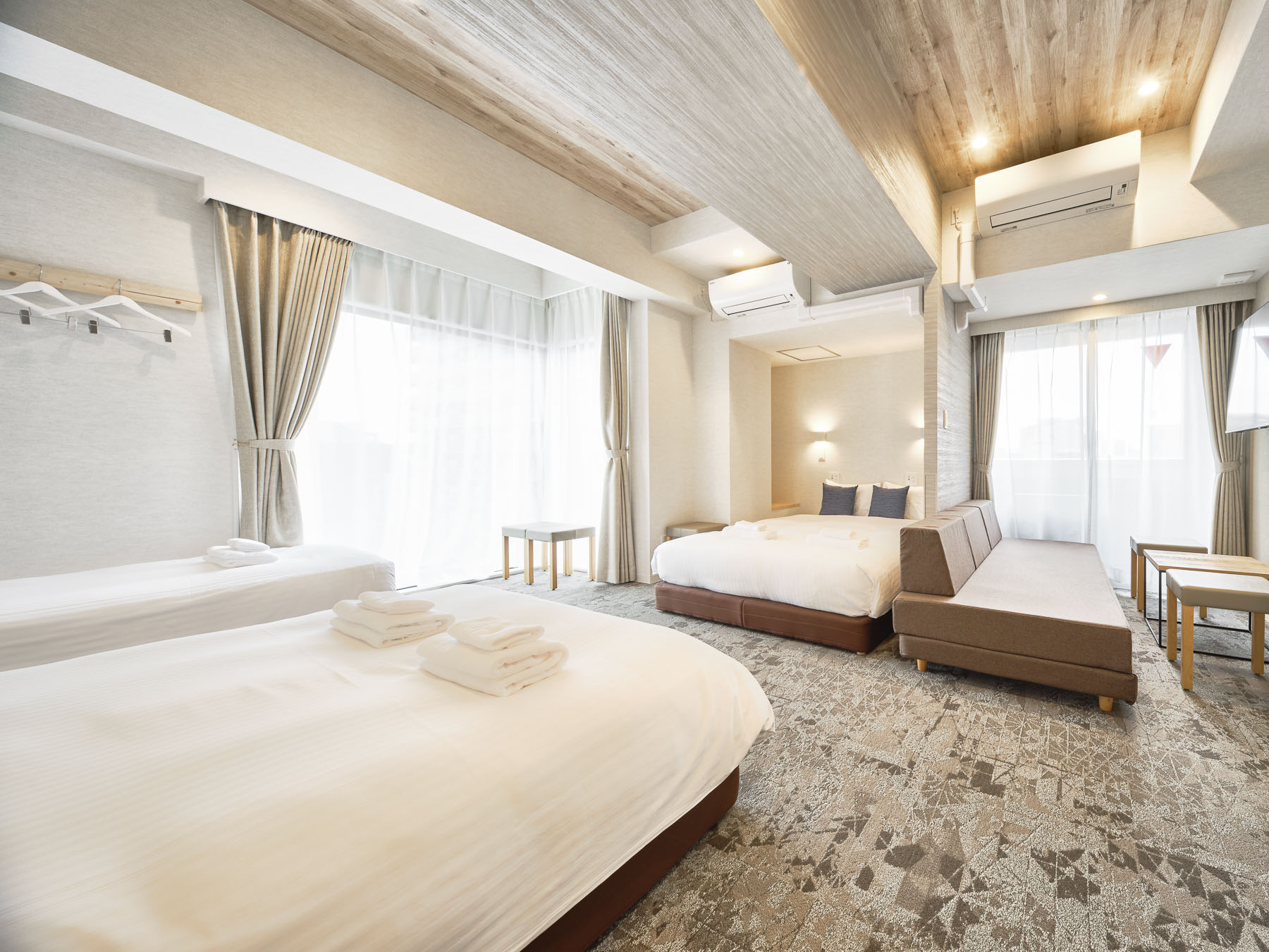 家族やグループでのご旅行にも最適な広々とした客室を備えた、完全無人の長期滞在型・特区民泊施設(全32室)です。
